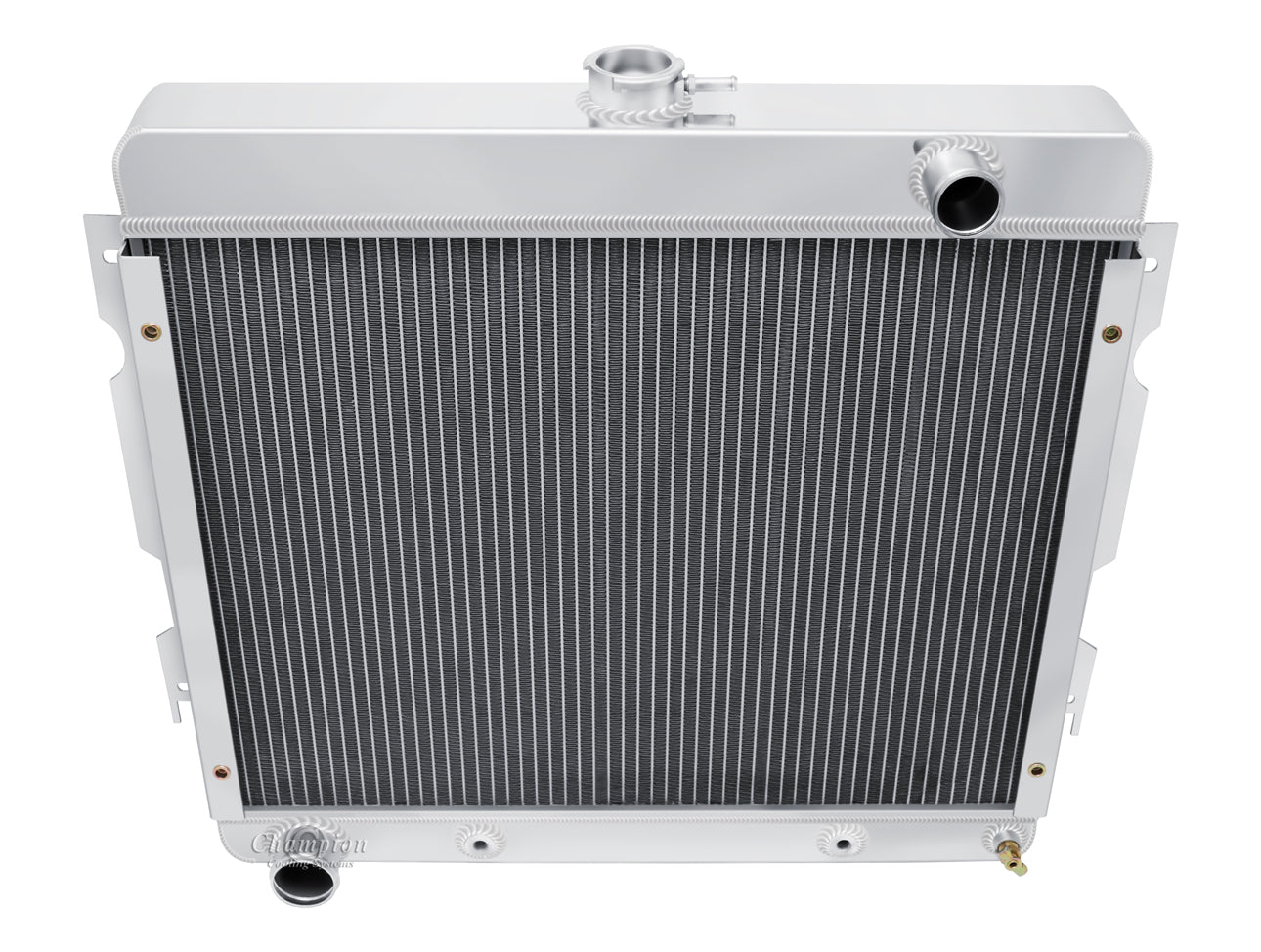 Down Flow Or Cross Flow Type: Down Flow | Core Height: 17 | Core Width: 22.375 | Overall Height: 22.75 | Overall Width: 25 | Core Thickness: 2.5 | Core Row Quantity: 3 Row | Mounting Type: Bracket | Inlet Location: Passenger | Inlet Diameter: 1.5 | Outlet Location: Driver | Outlet Diameter: 1.75 | Internal Transmission Oil Cooler: Yes | Transmission Oil Cooler Fitting Type: 1/8-27NPT | Tank Material: Aluminum | Core Material: Aluminum | Filler Neck Attached: Yes | Core Tube Width: 0.75